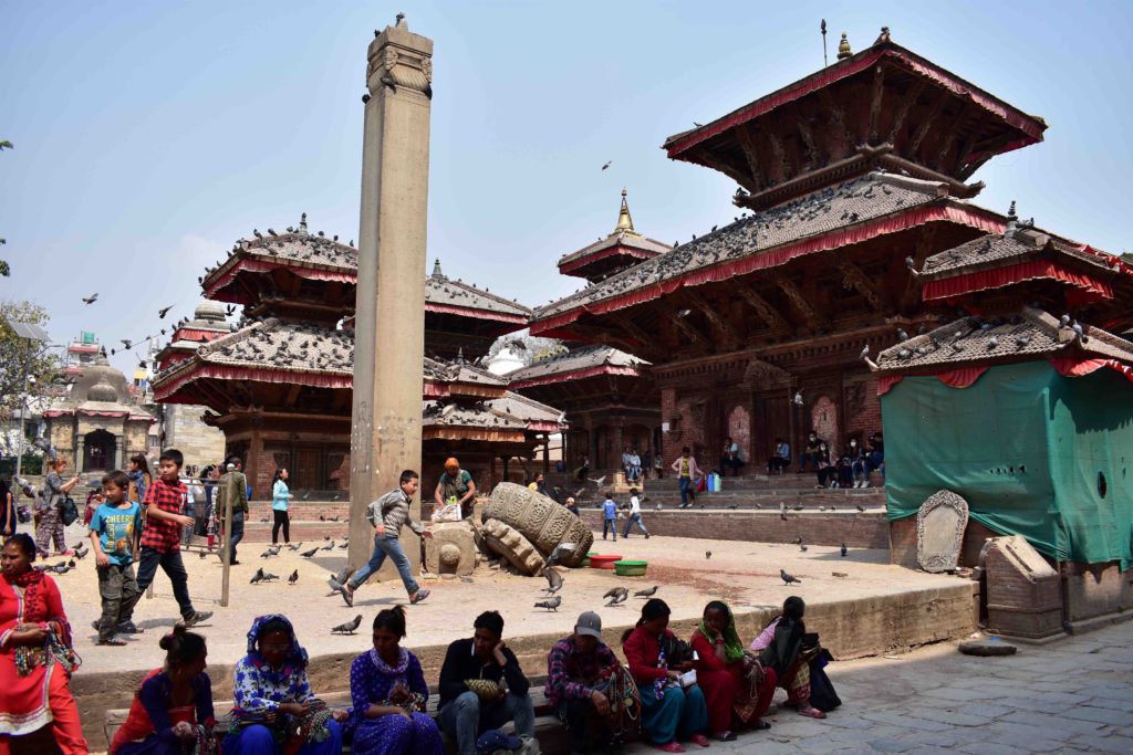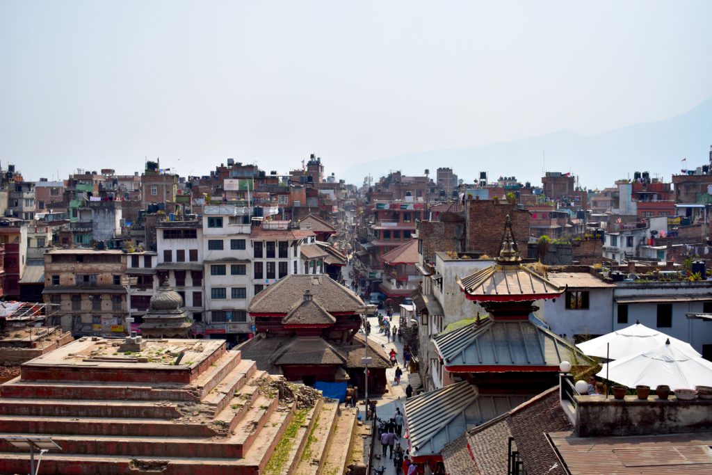 Durbar Square est situé au cœur de la vieille ville de Katmandou. Cette place regroupe de nombreux monuments historiques classés au Patrimoine Mondial de l’UNESCO _ des temples hindous et bouddhistes. Ils sont nombreux à avoir soufferts du tremblement de terre de 2015 (qui a fait plus de 8000 morts). Le site est donc actuellement en reconstruction. Afin d’avoir une vue sur l’ensemble de la place, nous avons pris un déjeuner au Cosmo de Café muni d’un roof top !