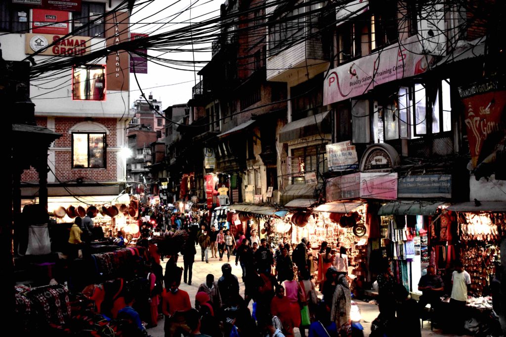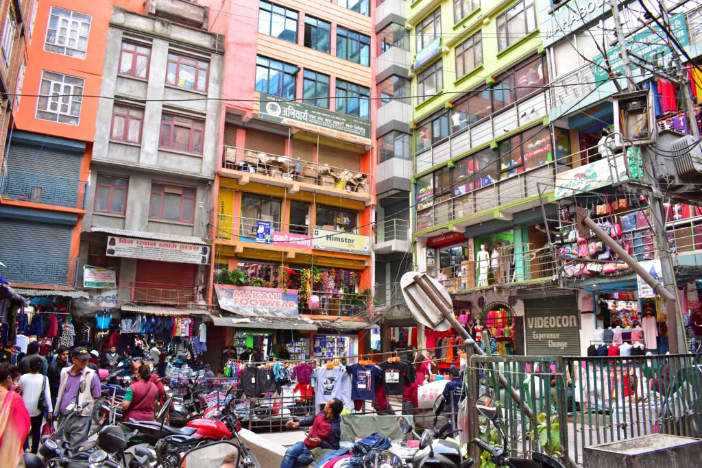 Katmandou, on aime et on déteste. Atterrir à Katmandou, c’est un choc culturel pour nous français. Tout y est différent. Le trafic, on en parle ? On se demande souvent si l’on va réussir à traverser une route sans se faire rouler dessus. Scooters, voitures, rickshaws, vélos et piétons empruntent les mêmes chemins. Les coupures d’électricité sont régulières. On comprend mieux en voyant les fils électriques pendre au travers de la ville entre deux poteaux. La poussière est omniprésente. Nombreux sont ceux qui portent un masque. Les déchets sont jetés au sol ou dans la rivière qui traverse la ville _ rivière qui n’a d’ailleurs quasiment plus d’eau en ce mois d’avril. Les népalais nous interpellent à tous les coins de rue pour nous vendre des babioles, de la nourriture ou pour nous embarquer dans leur taxi qui risque de perdre une roue en chemin. Des fois on entend, Mango ? Banana ? Marijua.. ? (Ah non désolé on s’appelle François et Athina).