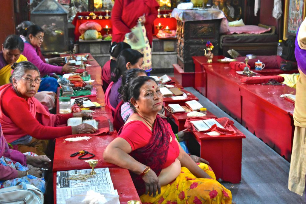 Nous nous dirigeons vers Durbar Square. Notre premier stop est le Golden Temple. Ce temple est vraiment magnifique. On peut monter à l’étage où se trouve le monastère. _ « Là des femmes et des hommes sont assis en tailleur pour faire leur prière. Nous continuons la visite en parcourant les différents temples. » _ Extrait de mon carnet de voyage manuscrit.