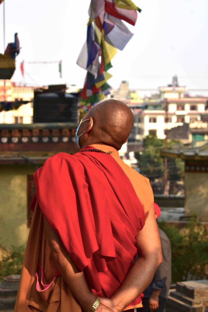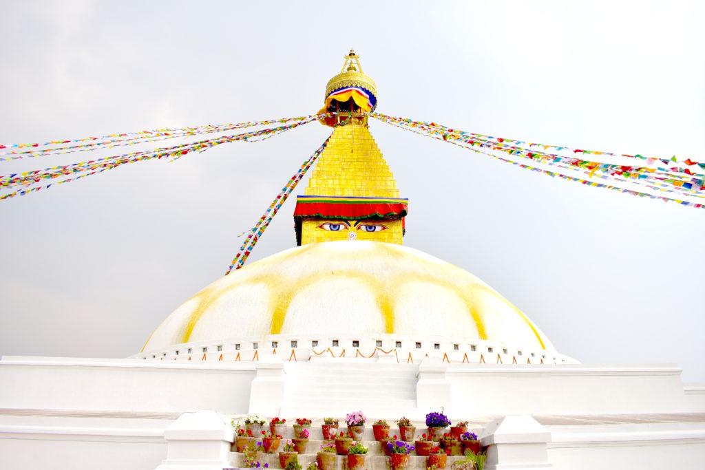 Ce stupa se situe au beau milieu des habitations, à l’est de Katmandou (j’ai pris un taxi pour m’y rendre). Il est fascinant ! Et encore mieux, pour apprécier encore plus et se rendre compte de la taille de ce monument, il est possible d’aller s’installer à la table d’un café en hauteur !