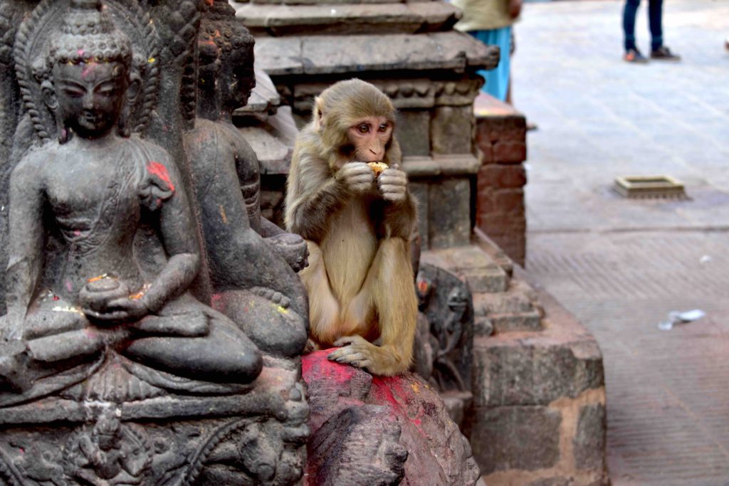 Nombreux sont les stupas au Népal. Le monkey Temple se situe à 2/3 km de Thamel. A pied c’est faisable. Arrivé en bas, il suffit de gravir les nombreuses marches afin d’atteindre le sommet et de bien évidemment payer un ticket d’entrée (exclusivité touristes blancs 😉 ). Là, on a une vue sur Katmandou et sa pollution. Lorsque l’on se retourne, un immense stupa se dresse devant nous. C’est vraiment beau. Des singes occupent ce site.