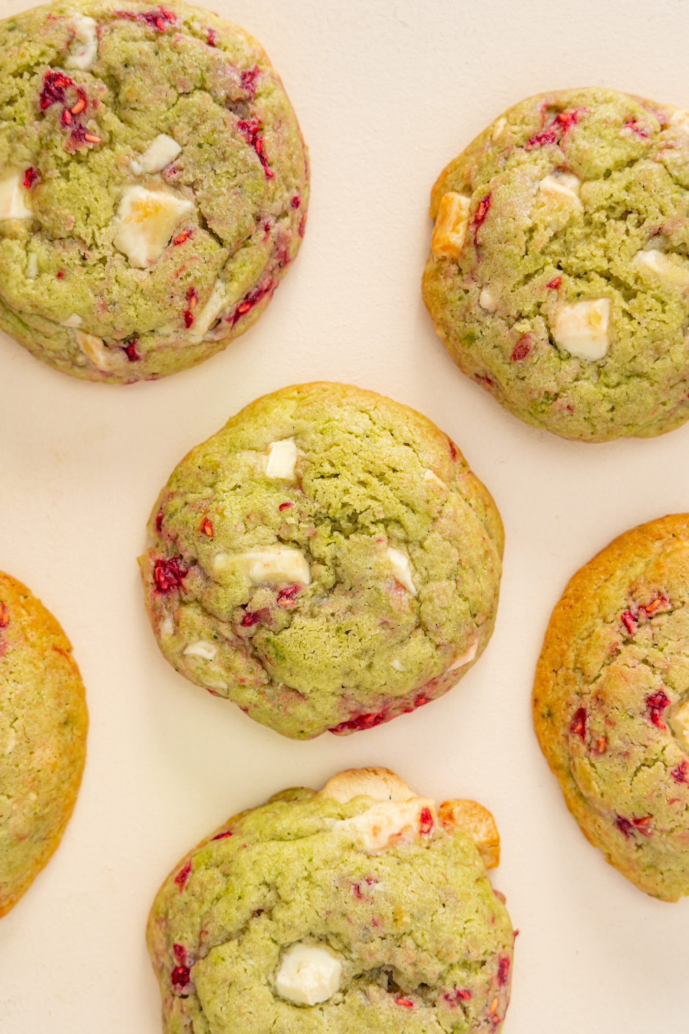 Cookies matcha chocolat blanc et framboises
