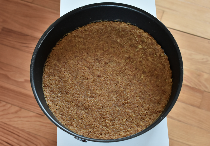 3- Verser la garniture dans le moule à charnière par dessus la préparation du biscuit.