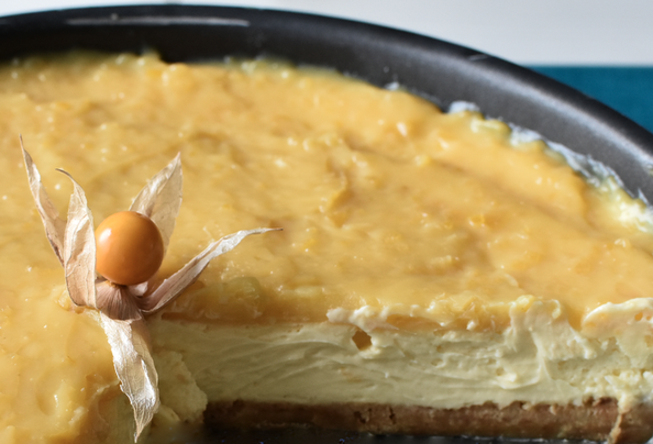 1- Étaler le lemon curd sur le cheesecake refroidi.