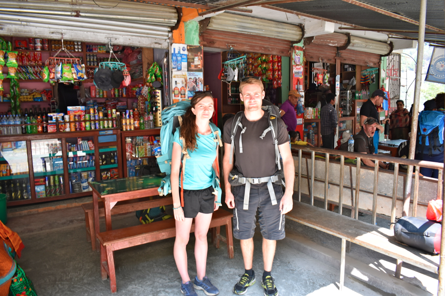 Nous voilà à Nayapul, permis de trekking et pass d’entrée pour le parc des Annapurnas en poche. Nous sommes prêts à débuter notre trek. Petit photo de départ et hop c’est parti !