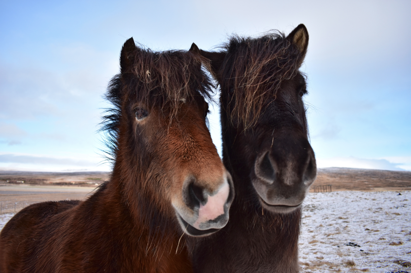 Nous faisons la rencontre des chevaux islandais. Ils sont magnifiques, on dirait que quelqu’un vient les coiffer tous les jours !