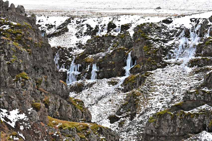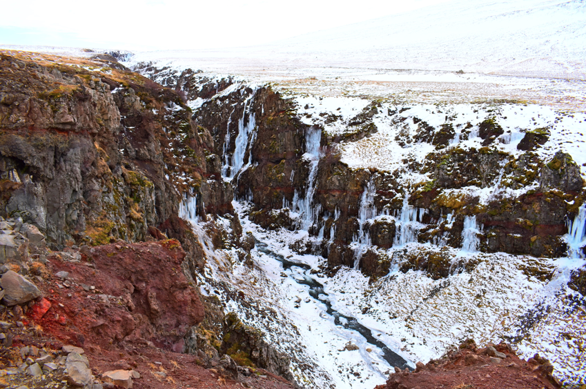 Nous admirons également les chutes D’Husafell et sommes étonnés de voir autant de touristes dans un endroit aussi reculé et à cette période de l’année.
