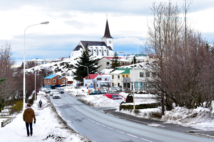 Nous visitons également le village le plus proche de la maison : Reykholt. Quelques fumerolles jaillissent du sol, c’est assez rigolo à voir. La petite église est mignonne et typiquement islandaise.